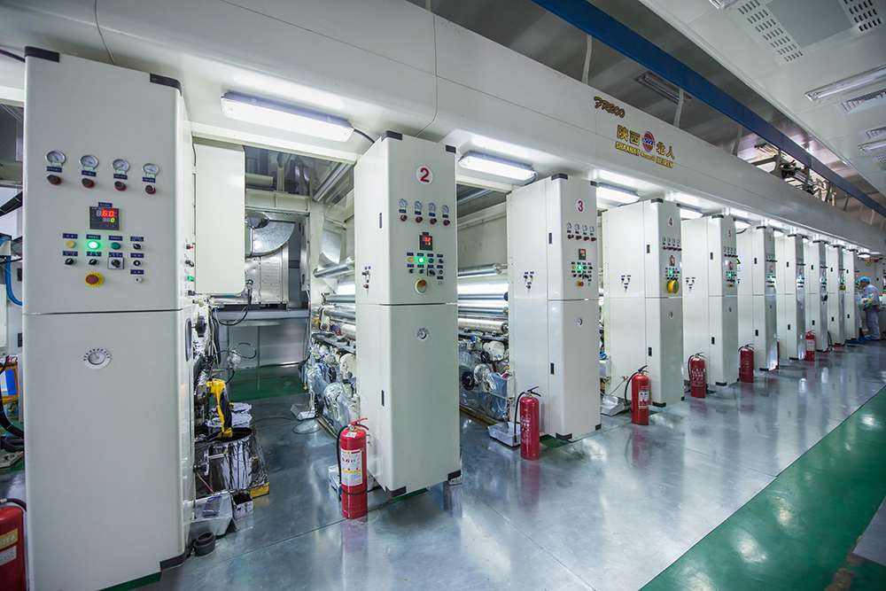 擁有齊全的先進(jìn)的實(shí)驗(yàn)室檢測(cè)設(shè)備(如美國安捷倫氣相色譜儀、紅外光譜儀等)、自動(dòng)化高速單元式印刷機(jī)3臺(tái)、鋁箔(PVDC)印刷涂布機(jī)2臺(tái)、干式復(fù)合機(jī)2臺(tái)、環(huán)保型無溶劑復(fù)合機(jī)3臺(tái)、高性能多層共擠上下吹膜機(jī)4臺(tái)、流延擠出機(jī)1臺(tái)、薄碼噴涂檢品機(jī)5臺(tái),分切機(jī)6臺(tái)、制袋機(jī)生產(chǎn)線25臺(tái)、鋰電池用鋁塑膜相關(guān)設(shè)備5臺(tái)。年設(shè)計(jì)生產(chǎn)能力1萬噸,年產(chǎn)值4.0億元。